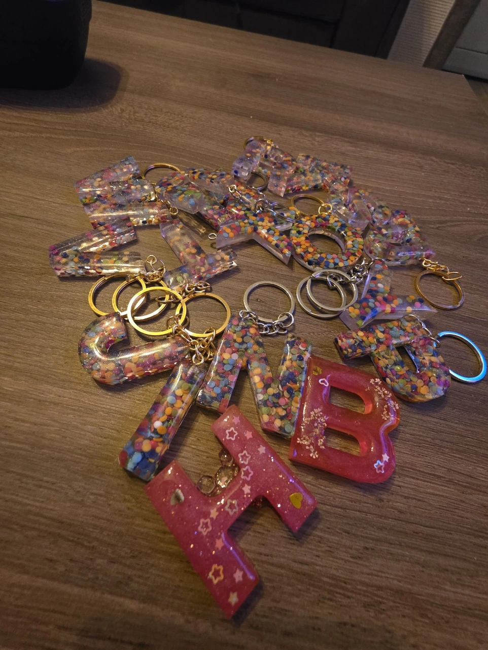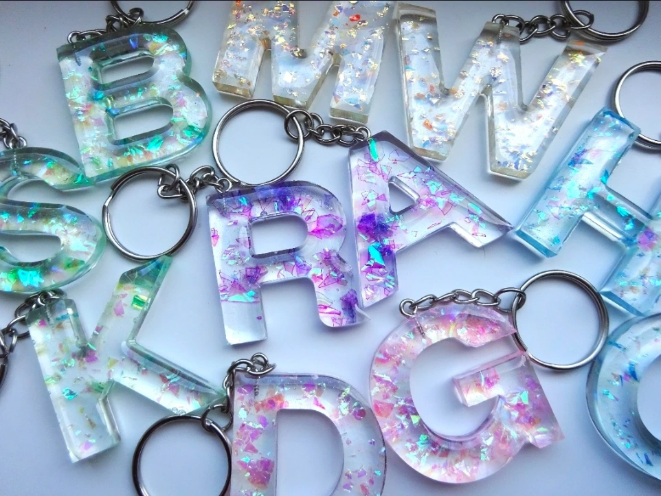 Des porte-clés en résine artisanaux, réalisés à la main dans mon atelier.